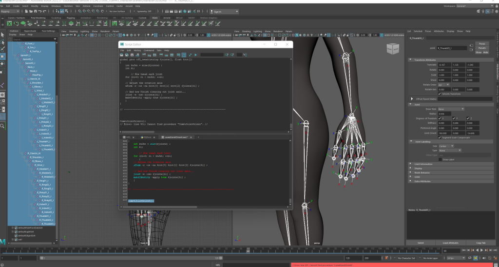 Following the tutorial I was watching I input the correct data into the script editor to ensure the joint positions were accurate for a human model. Once done, I selected the rig and my mesh and did Bind Skin.