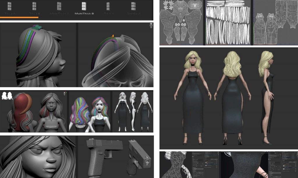 Method 1 – Zbrush; using the extract tool to model the appropriate clothes Method 2: – Marvelous Designer, creating the correct patterns for the clothing that can hang off the body of the modelled character.